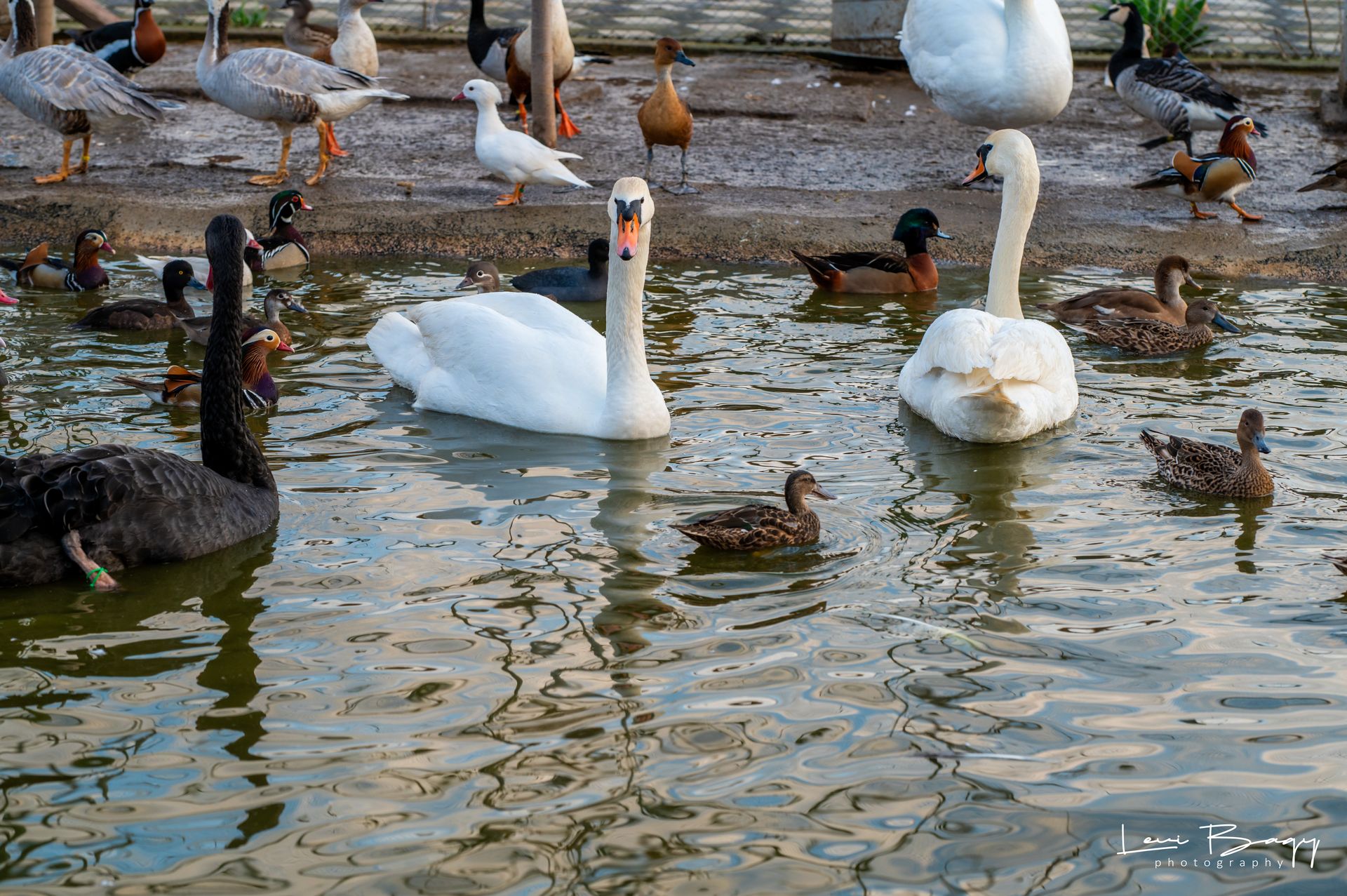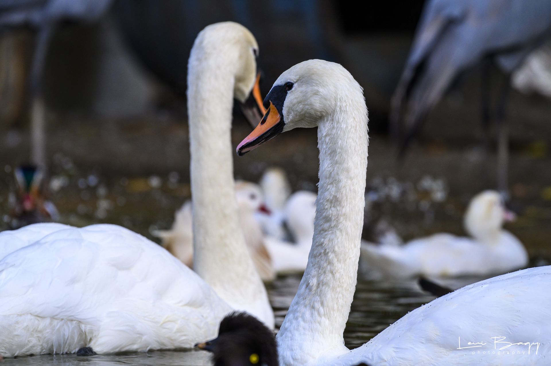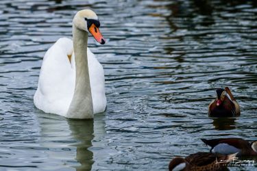Lebăda albă (Cygnus olor) este o specie mare de pasăre acvatică, cunoscută pentru penajul său alb imaculat și gâtul lung și elegant. Masculii, au o greutate de aproximativ 11-13 kg, în timp ce femelele sunt ușor mai mici, cântărind între 8 și 10 kg. Lebedele au un cioc proeminent de culoare portocalie, cu o zonă neagră de-a lungul bazei.