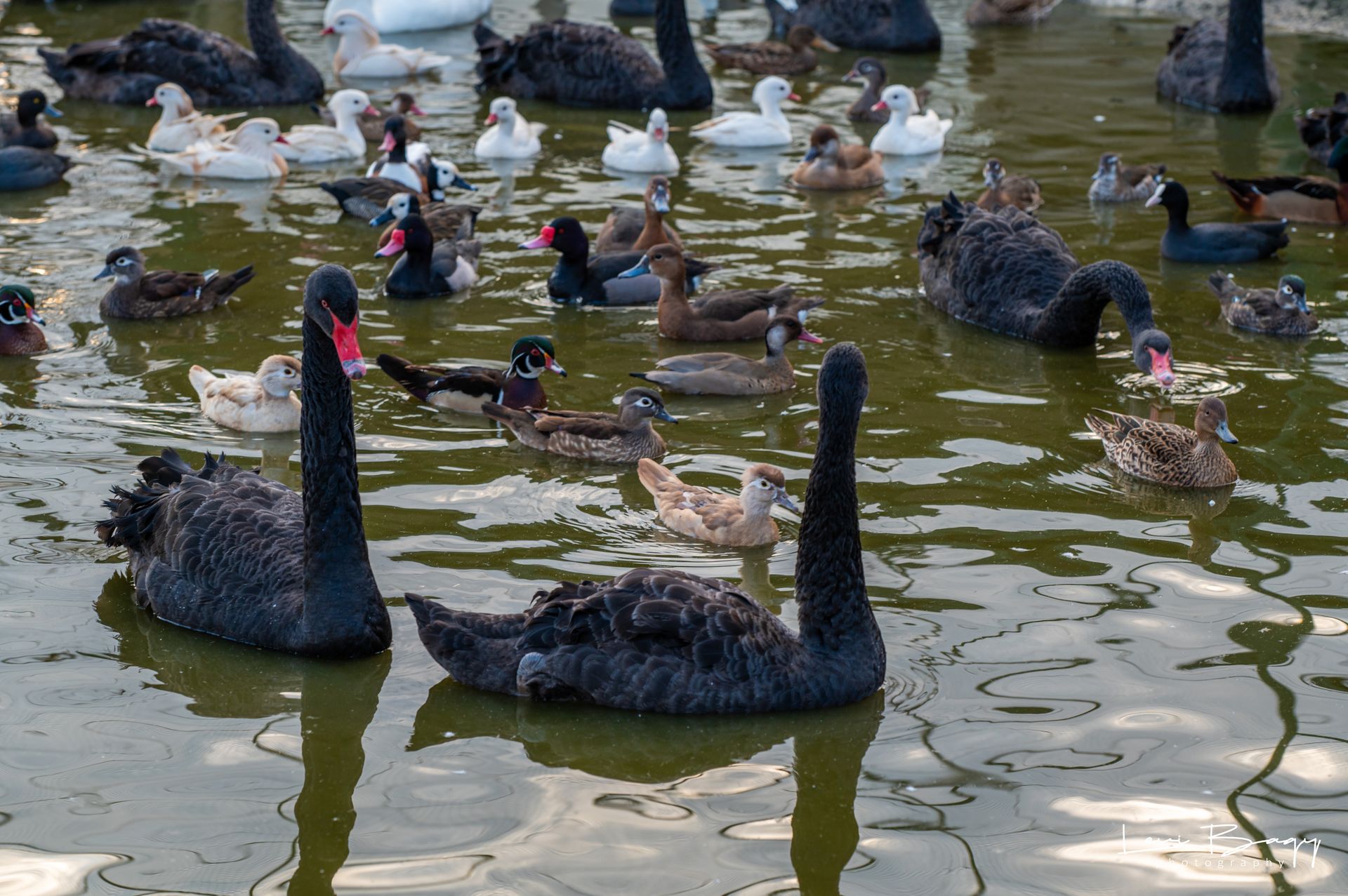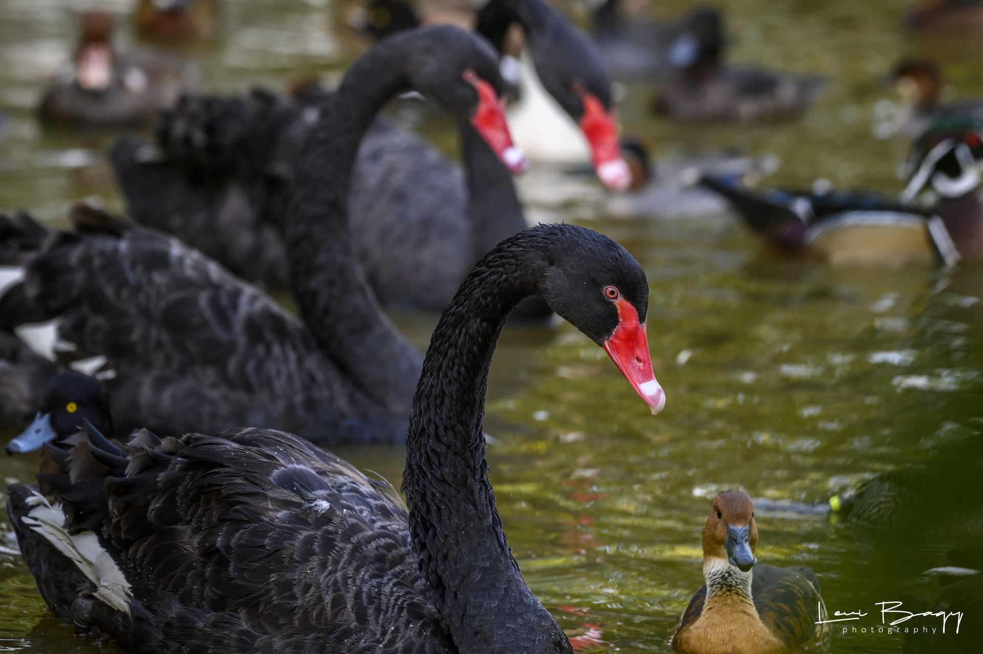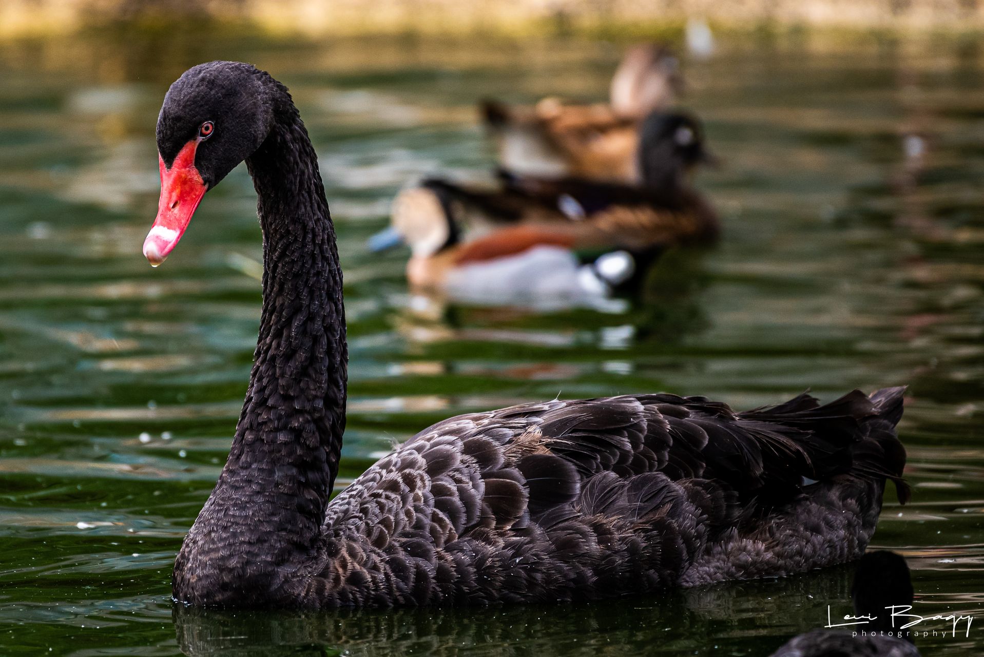 Lebăda neagră (Cygnus atratus) este o pasăre acvatică din familia Anatidae, originară din Australia, dar și din Noua Zeelandă și insulele din apropiere. Este cunoscută pentru penajul său complet negru și pentru gâtul elegant, care este de asemenea de culoare neagră. Masculii cântăresc între 8 și 12 kg, iar femelele sunt puțin mai ușoare, având un aspect grațios și sofisticat.