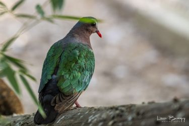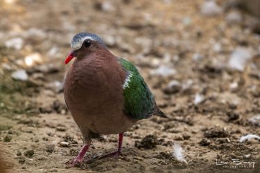 Porumbelul cu Aripă Verde (Treron vernans) este o specie de porumbel frugivor, originar din regiunile tropicale din sud-estul Asiei. Este cunoscut pentru penajul său viu colorat, având corpul predominant verde, pieptul în nuanțe de portocaliu sau roz, iar aripile sunt marcate cu pene de un verde intens și reflexii galbene. Masculii și femelele au un colorit similar, dar masculii pot prezenta culori mai intense.